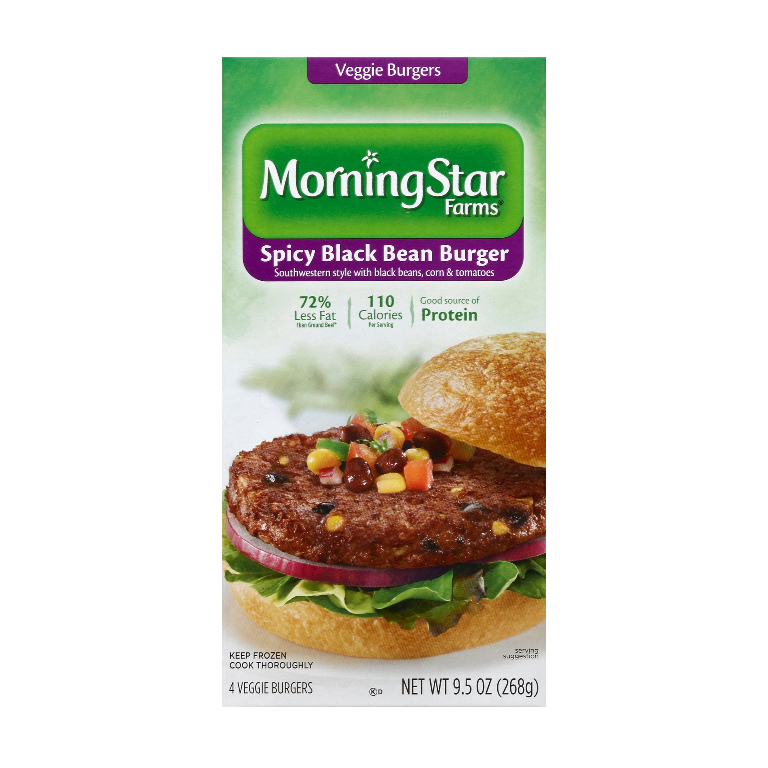 Ounces salsa 1 teaspoon chili powder. 12 each 1 pound 13 ounces morningstar farms spicy black bean veggie burgers 12 each 8 inch round flour tortillas. Morningstar farms spicy black bean burger frozen unprepared nutrition facts calories for best results be sure to enable the option to print background images in the following browsers. Heating instructions developed using 1100 watt microwave.